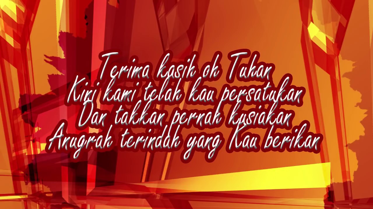 G Kini tiba waktu yang dinanti Em Sudah lama saling pahami hati C Satu keyakinan memasti Am D Kau yang selama ini Ku cari. Chorus G Kini tiba waktunya Em Kau dan aku sekarang jadi kita C Janji yang pernah ada Am C D Tlah terbukti dan jadi nyata G Terima kasih oh Tuhan Em Kini kami telah kau persatukan C Dan takkan pernah kusiakan D Em D C Anugrah terindah yang Kau berikan. Download Terima Kasih Tuhan Mp3 Song or Play Terima Kasih Tuhan Song Online for free on Wynk.